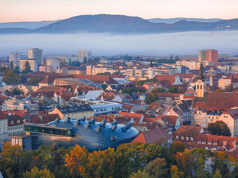 دومین شهر بزرگ اتریش، گراتس بر روی رودخانه مور قرار دارد و مدتها است که به یک ایستگاه محبوب برای گردشگران تبدیل شده است. اولین گشتوگذار خود را از بناهای تاریخی شهر، به ویژه در شهر قدیمی با نمای باروک شروع کنید. قرعه بعدی به تپه زیبای شلوسبرگ که پشت شهر قدیمی قرار دارد، می رسد. با کاوش های انجام شده مشخص شد این منطقه از سال ۸۰۰ میلادی آباد شده است، اما نام شهر گراتس اولین بار در سال ۱۱۲۸ ذکر شد، و پس از آن زمان به دست هابسبورگ ها رسیده است. در گذشته شهر گراتس به عنوان یک مکان تجاری و بازرگانی اهمیت بسیاری داشته است.