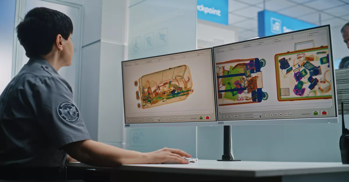 مامور گمرک در حال بررسی کالای مسافری